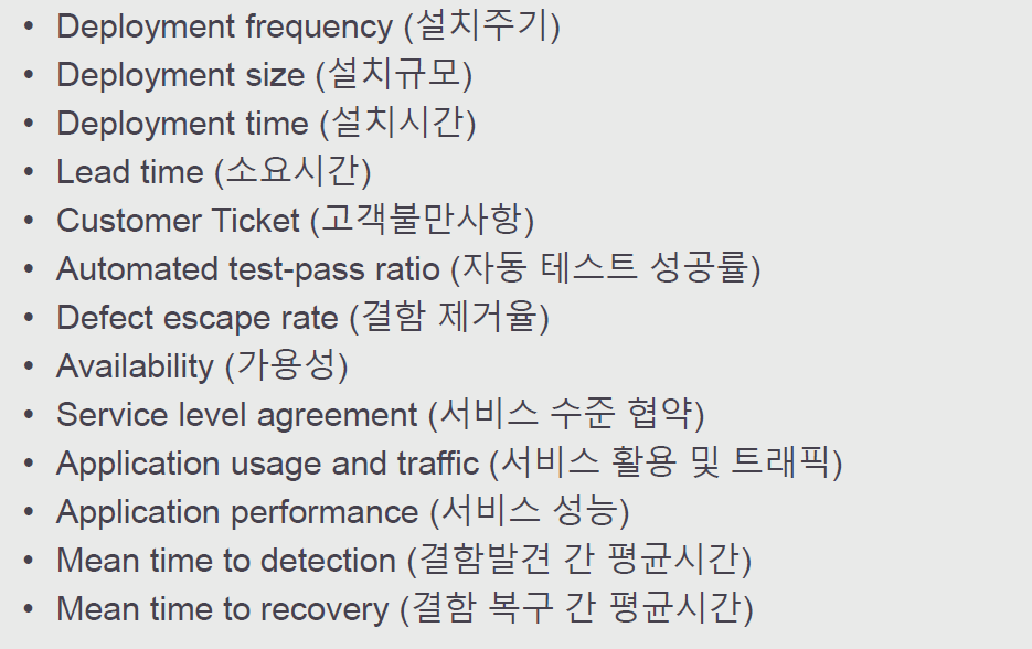 DevOps의 성능을 측정하는 것에는 어떤 요소가 있는가.