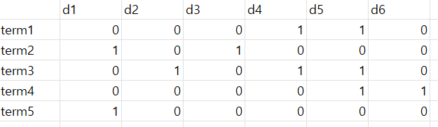 한 행은 incidence vector(사건 벡터)라고 칭하며, 1인 값은 그 document에 해당 term이 존재함을 의미한다.