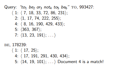 이전의 posting list는 위치정보가 없음(non positional)