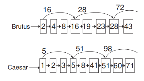 skip pointer에 연결된 번호<현 비교 번호일 때에 스킵 가능.