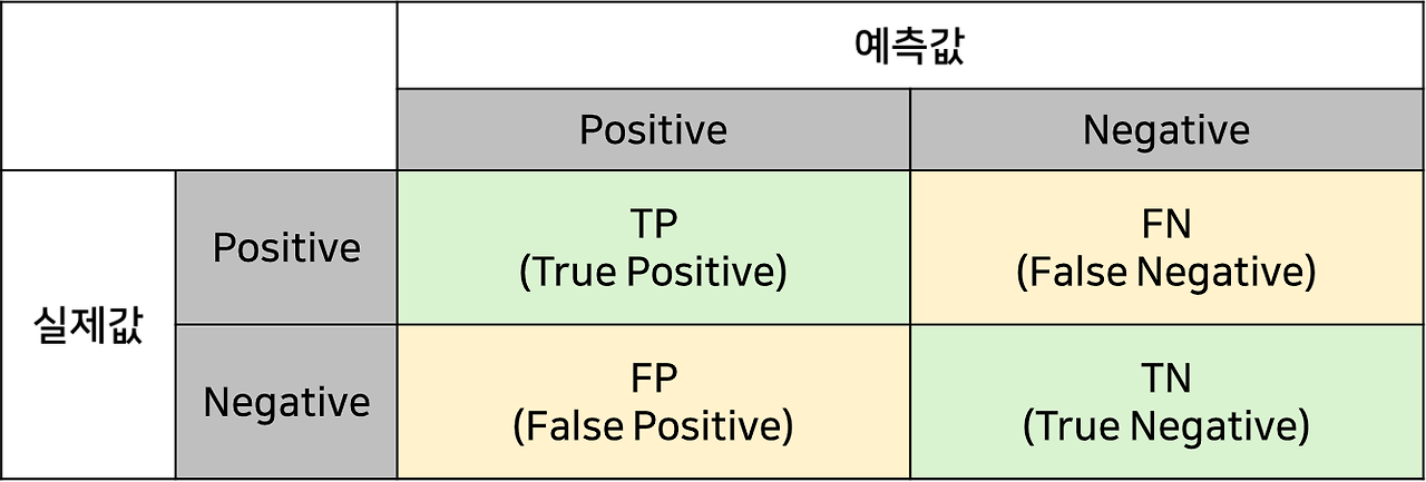 사실 위의 표는 데이터 예측에 맞춰져 있는데, 실제값-관련 여부/ 예측값-검색 여부로 바꾸어 생각하면 된다.