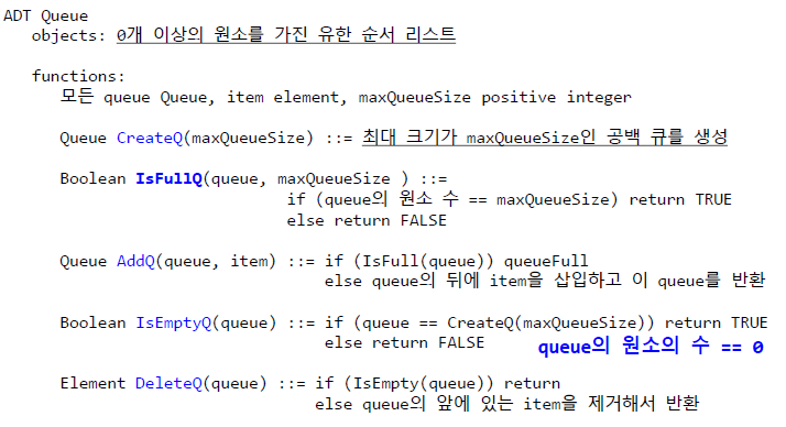 addq와 deleteq: push/pop과 유사하나 사용하는 변수가 구분됨(addq-rear, deleteq-front)