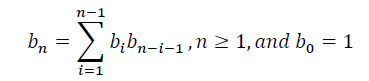 n개 행렬을 곱하는 방법의 수 bn = Σb_i*b_(n-i), n>1