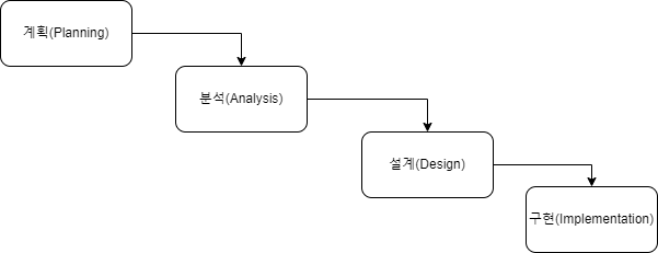 - 폭포수 모델(Waterfall model)