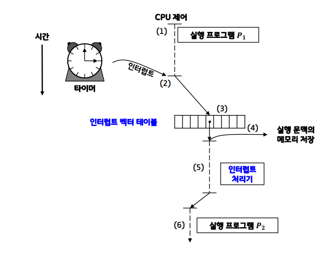 - instruction 실행 사이에 인터럽트 요청 여부 확인 및 인터럽트 처리기 호출
