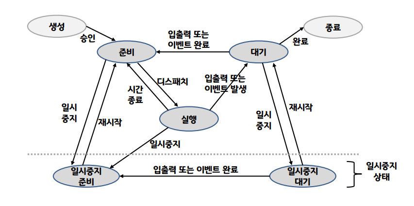 - 자신이나 다른 프로세스가 일시중지 가능.