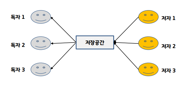 - 복수의 reader와 writer의 저장공간을 공유하면서 데이터를 읽거나 기록
