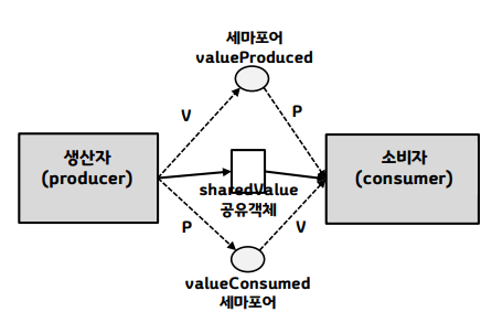 - 생산자(producer): 공유객체(shared object)에 데이터를 생성하여 저장