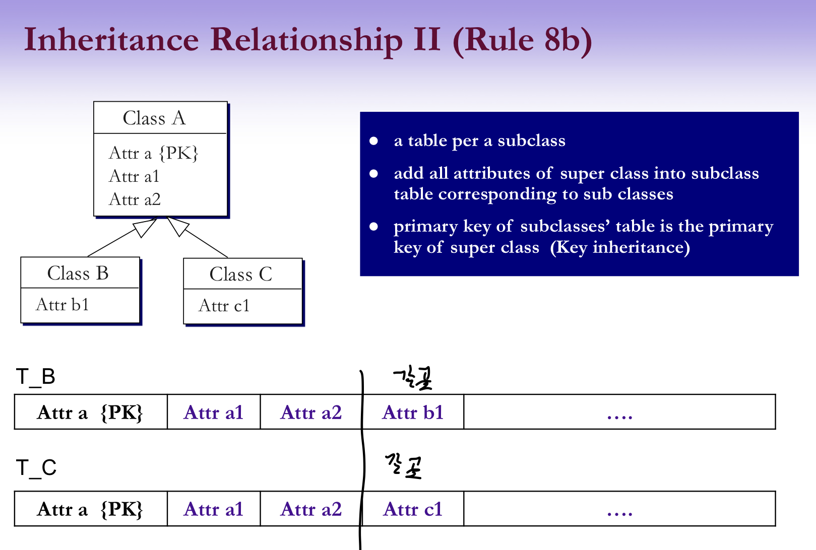 - a) subclass 인스턴스의 primary 키는 superclass의 primary키와 동일한지 확인