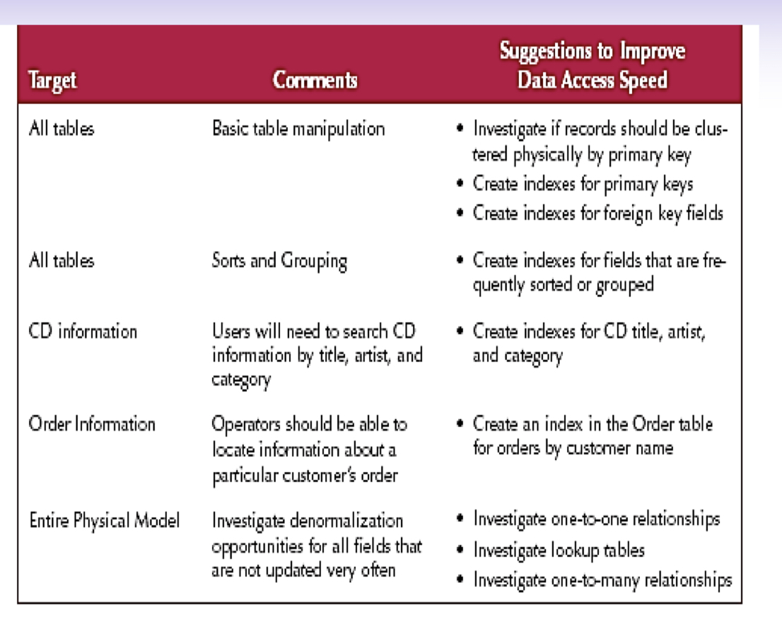 Denormalization: 프로세스 속도를 높이고, 조인동작을 제거하는 대신, 한 테이블에서 다른 테이블로 데이터를 추가.